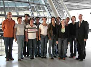 Der Kurzbesuch in der Bundeshauptstadt führte die Mitarbeiter des Bürgeramtes auch in den Reichstag. Dort verfolgten sie einen Vortrag über die Arbeitsweise des Parlaments und die Geschichte des Reichstages. Peter Götz MdB begrüßte die Gruppe auf der Fraktionsebene und führte anschließend eine politische Diskussion im Sitzungssaal des Vorstandes der CDU/CSU-Bundestagsfraktion. Selbstverständlich gehörte zum Berlin-Programm auch eine Stippvisite zur Bundesdruckerei.