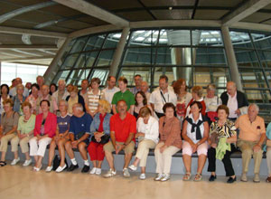 Im Reichstag verfolgte der Wanderklub Post auf der Besuchertribüne im Plenarsaal einen Vortrag über die Arbeit der Parlamentarier und die Geschichte des Reichstages. Daran schloss sich eine ausgedehnte Führung durch das geschichtsträchtige Haus an, die mit einer Kuppelbesichtigung endete. Um wieder zu Kräften zu kommen, hatten die Gäste anschließend Gelegenheit, ein Mittagessen im Besucherrestaurant des Paul-Löbe-Hauses einzunehmen.
