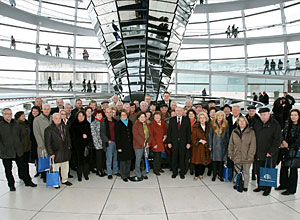 Die Gruppe verfolgte außerdem einen Vortag über die Geschichte des Reichstages und die Arbeitsweise des Parlaments auf der Besuchertribüne im Plenarsaal. Im Anschluss besichtigten die Gäste die Kuppel des Reichstages.