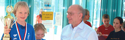 Beim 32. internationalen Neujahrschwimmfest im Rastatter Alohra am 24. Januar 2009 überreicht Peter Götz den Ehrenpokal dem Gewinner Julius Haas vom TV Bühl.
