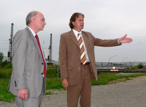 Peter Götz, MdB und Bürgermeister Dietmar Späth bei der Besichtigung des Standorts Haltestelle Nord.