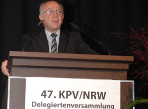 Der KPV-Bundesvorsitzende Peter Götz, MdB, reiste Ende Oktober zur Landesdelegiertenversammlung der KPV/NW nach Duisburg. In seiner Rede wies er auf die Erfolge der Bundesregierung unter Kanzlerin Dr. Angela Merkel hin. "Wir haben die Kinderförderung deutlich verbessert und die Finanzen insgesamt wieder auf bessere Füße gestellt", so Götz.