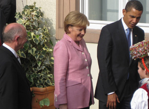 Bei stahlendem Sonnenschein sind US-Präsident Barack Obama und seine Frau Michelle Anfang April beim Nato-Gipfel in Baden-Baden am Marktplatz von Bundeskanzlerin Angela Merkel mit militärischen Ehren empfangen worden. Anschließend wurden die amerikanischen Staatsgäste im Innenhof des Rathauses von Oberbürgermeister Wolfgang Gerstner und Ministerpräsident Günther Oettinger begrüßt. Sie trugen sich dort in das Goldene Buch der Stadt sowie in das des Landes ein. Mit dabei war Peter Götz MdB.