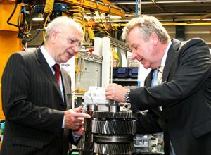 Als derzeit – aus Sicht des Standorts Gaggenau – bedeutendste Investition in die Zukunft bezeichnete der Gesprächspartner von Peter Götz das neue Presswerk in Kuppenheim. Mit Inbetriebnahme des rund 70 Millionen Euro teuren Objekts – voraussichtlich im dritten Quartal 2010 – wird die Produk-tion von Außenhautteilen für Lkw-Kabinen sowie für die Nachfolgegenerationen der A- und B-Klasse komplett in die Nachbarstadt verlagert. Eine Reduzierung der Produktionsfläche in Gaggenau gehe damit jedoch nicht einher, versicherte Holger Steindorf. Peter Götz begrüßte die Entscheidung der Konzernspitze für den Standort Kuppenheim ausdrücklich: "Dieses Projekt ist enorm wichtig für die gesamte Region", so der Abgeordnete.