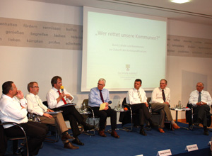 Der hochkarätig besetzten Podiumsdiskussion folgten über 80 Interessierte. In einer lebhaften Diskussion wurden zahlreiche Facetten der finanziellen Lage in den Kommunen thematisiert. Weitgehend einig waren sich die Podiumsteilnehmer über die steigende Belastung der Kommunen im Bereich der Sozialkosten sowie der Kosten für Kinder –und Jugendhilfe. Götz machte sich unter anderem für die Einführung einer Schuldenbremse in den Kommunen stark.