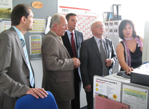 Anschließend besuchten die beiden Abgeordneten außerdem das Service Center, den telefonischen Kundenservice der Agentur für Arbeit Rastatt. 50 Mitarbeiter nehmen hier täglich die eingehenden Kundenanrufe entgegen, in den ersten fünf Monaten des Jahres 2011 knapp 125 000 Gespräche. 93 Prozent der Anrufe erreichten unverzüglich einen Ansprechpartner. Außerdem konnten gut 81 Prozent der Anliegen abschließend bearbeitet werden. Götz zeigte sich beeindruckt von der hohen Effizienz bei der Bearbeitung der Kundenanliegen. Außerdem lobte er die Freundlichkeit und Fachkompetenz der Mitarbeiter.