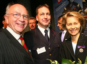 Peter Götz brachte zum Ausdruck, welch große soziale Bedeutung die Feuerwehren neben ihren klassischen Aufgaben wie den flächendeckenden Brandschutz und den Katastrophenschutz für die Gesellschaft haben. Vor allem das ehrenamtliche Engagement der Freiwilligen Feuerwehren und die Jugendarbeit sind gerade für den ländlichen Raum überaus wichtig. Götz und Lipinski konnten sich dabei einig wissen mit der ebenfalls anwesenden Bundesministerin für Familie, Senioren, Frauen und Jugend, Frau Dr. Ursula von der Leyen, die gekommen war, um das aus Bundesmitteln geförderte Projekt „Mädchen und Frauen in den Freiwilligen Feuerwehren“ abzuschließen.