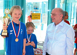 Beim 32. internationalen Neujahrschwimmfest im Rastatter Alohra am 24. Januar 2009 überreicht Peter Götz den Ehrenpokal dem Gewinner Julius Haas vom TV Bühl. [mehr]