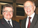Peter Götz gratulierte Abteilungskommandant Paul Hahn beim Festbankett der Freiwilligen Feuerwehr Stollhofen zum 100-jährigen Bestehen. Er lobte das ehrenamtliche Engagement, das die Angehörigen der Freiwilligen Feuerwehr für die Gemeinschaft erbringen. [mehr]