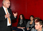 Götz diskutiert mit Schülern in der Klosterschule vom HL. Grab