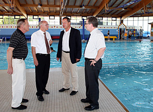Peter Götz zeigte sich beeindruckt von der aktuellen Entwicklung in Kuppenheim. Aktiv sind Verwaltung und Gemeinderat nicht nur bei der Ansiedlung von Unternehmen. Auch in der Umsetzung des Konjunkturpakets II sei die Stadt vorbildlich, lobte der Abgeordnete. Bereits Anfang April wurden die mit öffentlichen Mitteln geförderten Projekte auf den Weg gebracht. Peter Götz informiert sich derzeit auf seiner Sommertour durch Mittelbaden, wie das von ihm maßgeblich mitgestaltete Konjunktur-programm vor Ort wirkt. Kuppenheim konzentriert sich auf zwei Großmaßnahmen: die energetische Sanierung der Werner-von-Siemens-Realschule durch Austausch aller Fenster (Auftragsvolumen 818.000 Euro) sowie des Hallenfreibads Cuppamare. Dort reduziert die Erneuerung der Lüftungsanlage den Stromverbrauch um jährlich 1,1 Millionen Kilowattstunden; die Investition in Höhe von 150.000 Euro amortisiert sich innerhalb von nur zwei Jahren.
