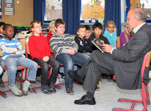 „Lesen vermittelt Kindern wichtige Basiskompetenzen, die für das spätere Leben von großer Bedeutung sind“, betont Peter Götz. Er beteiligte sich deshalb gern am bundesdeutschen Vorlesetag. In der Klasse 3a der Theodor-Heuss-Schule in Baden-Baden traf er auf Schüler, die von Klassenlehrerin Nicole Bertram und der pädagogischen Assistentin Christine Huber gut auf seinen Besuch vorbereitet waren.